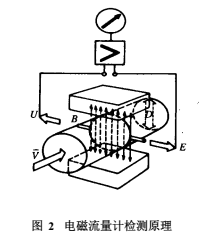 具有導(dǎo)電性的被測介質(zhì)液態(tài)以一定的速度流動時,則在與流動方向垂直的方向上產(chǎn)生與流量成比例的感應(yīng)電勢 E,其值為