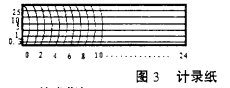 記錄紙其長(zhǎng)度和寬度根據(jù)記錄設(shè)備要求,其橫坐標(biāo)可以設(shè)計(jì)成以小時(shí)為單位,也可以設(shè)計(jì)成以天為單位,可以根據(jù)用戶要求設(shè)計(jì)成不同型式,其縱坐標(biāo)也是根據(jù)流量公式Q=CHN計(jì)算得到,量程可自己選擇,其樣式可參見(jiàn)圖3。