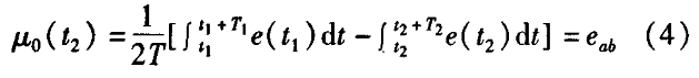 冷卻水流量計一般都采用工頻交流電源供電,其電源電壓的幅值和頻率的變化都會給冷卻水流量計帶來電源性干擾噪聲。對電源電壓的幅值變化,因采用多級集成穩壓,一般而言電源電壓的幅值變化對電磁流量的測量精度影響不大。當電源電壓的頻率波動時,雖然其波動范圍有限,但對冷卻水流量計測量精度影響較大。為了解決工頻干擾問題,實現對流體流速感應電勢e柚信號的準確測量,需利用以下基本關系:①勵磁周期為工頻周期的整數倍,即勵磁頻率為50/nHz(n為偶數);②正負勵磁下的同相位采樣。圖2是對應低頻矩形波勵磁形式下的典型電勢信號形式,按上述關系在一個勵磁周期下,若假設t。和t:點為工頻干擾的等效干擾點,且采樣寬度T=T1=T2,則e –ab的基本算式為:,