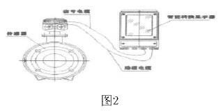 膠水專用流量表是由流量傳感器和轉換器(也叫顯示器)兩大部分組成。測量管上下裝有激磁線圈,通激磁電流后產生磁場穿過測量管,一對電極裝在測量管內壁與液體相接觸,引出感應電勢,送到轉換器。激磁電流則由轉換器提供。如圖2所示: