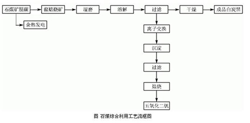 本項目為石煤綜合利用的項目。現(xiàn)有提釩工藝產(chǎn)生大量廢渣。其主要成分為二氧化硅,但其中夾帶有大量的釩資源,釩資源利用率低,同時,該廢渣中堿含量較高,如將廢渣隨意堆放,易造成環(huán)境污染。本項目*大特點在于利用現(xiàn)有提釩工藝中的提釩二次渣作為制備沉淀法白炭黑的主要原料,將廢渣中的硅資源得到充分利用。為企業(yè)創(chuàng)造了新的經(jīng)濟(jì)增長點,同時,解決了現(xiàn)有提釩生產(chǎn)中造成的釩資源浪費和環(huán)境污染問題,此外,該項目利用現(xiàn)有提釩生產(chǎn)線脫碳工序中產(chǎn)生的余熱作為加熱熱源,取代了傳統(tǒng)工藝以煙煤為主要燃料的方法,即對生產(chǎn)中產(chǎn)生的余熱得到了有效合理的利用,又進(jìn)一步降低了產(chǎn)生的燃料成本,達(dá)到了節(jié)能減排,資源綜合利用的目的,工藝流程框圖如下。