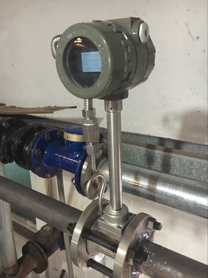 2、溫度補償一體型渦街流量計還帶有溫度傳感器,可以直接測量出飽和蒸汽的溫度并計算出壓力,從而顯示飽和蒸汽的質量流量。