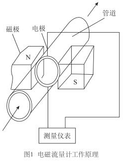 智能電磁流量計(jì)是應(yīng)用電磁感應(yīng)定律,即:導(dǎo)電體在磁場(chǎng)中運(yùn)動(dòng)產(chǎn)生感應(yīng)電動(dòng)勢(shì),而感應(yīng)電動(dòng)勢(shì)又和流量大小成正比,通過(guò)測(cè)電動(dòng)勢(shì)來(lái)反映管道流量的原理而制成的,用來(lái)測(cè)量導(dǎo)電流體的體積流量(見(jiàn)圖1)。工業(yè)上多用以測(cè)量水、礦漿、各種酸、堿、鹽等腐蝕液體等介質(zhì)的流量。