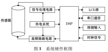 高頻勵磁管道流量計由傳感器、高頻勵磁電路、信號處理電路等組成,其中高頻勵磁電路決定著傳感器磁場的強弱,勵磁電路的穩定性以及精確性決定著系統檢測的準確性以及穩定性。DSP 系統控制勵磁電路激勵傳感器線圈,當線圈中有導電液體流過時,其切割磁感線并在傳感器兩端的線圈上產生感應電動勢,利用信號檢測電路監測感應電動勢的大小,*后根據相應關系計算出液體的流量,系統硬件框圖如圖 1 所示。