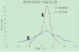 我公司在該小區(qū)管網改造前,在不同單元不同樓層分別安裝100臺室溫采集器。渦街氣體流量計調前數據采集于2017~2018年供熱期,調后數據采集于2018~2019年供熱期。經過兩個采暖期,共有96臺室溫采集器可以正常提供數據。數據分析結果見圖3所示。