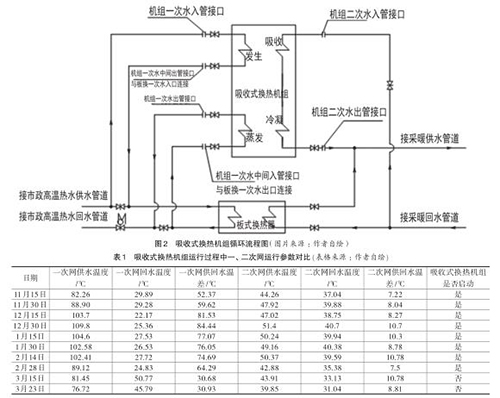 如圖1所示,以某熱力站為例,原熱力站一次網(wǎng)供回水設(shè)計(jì)溫度為130℃ /70℃,二次網(wǎng)設(shè)計(jì)供回水溫度為80℃ /60℃,這其中的不可逆損失在圖中顯而易見。我們可以利用增熱型吸收式熱泵,即電廠煙氣流量計(jì),將一次網(wǎng)供水作為高溫驅(qū)動熱源,為板式換熱器中的回水提供驅(qū)動力,繼而發(fā)揮熱泵效應(yīng),吸收一次網(wǎng)回水的低溫?zé)嵩吹臒崃浚倥c板式換熱器換回的熱量一起作為二次網(wǎng)的供水一起供給熱用戶。