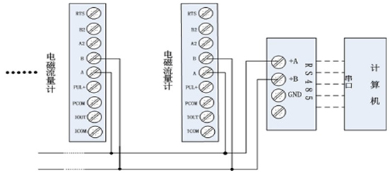 手操器與智能液體流量計連接如下圖所示: