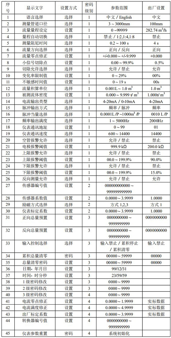 LDG 智能系列污水流量計量表編碼一覽表