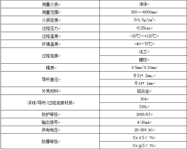 Float-11浮球式液位計技術參數表