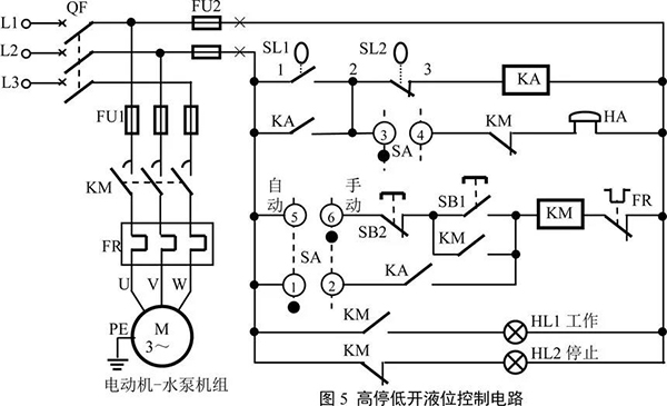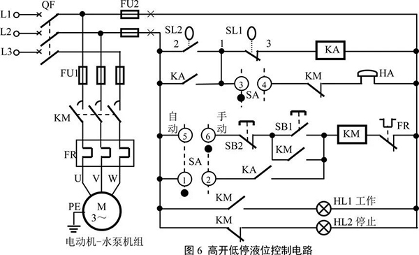 液位的控制,可以是兩個(gè)方面:液位低于一定限度時(shí),啟動(dòng)電動(dòng)機(jī)-水泵機(jī)組,使液體能得到及時(shí)的補(bǔ)充,比如水塔;液位高于或達(dá)到一定限度時(shí),啟動(dòng)電動(dòng)機(jī)-水泵機(jī)組,將液體及時(shí)排出,比如地道橋積水或污水池等。
