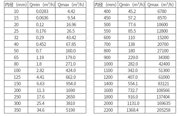 五、流速、口徑、流量關(guān)系計(jì)算器