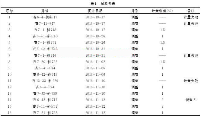 通過現場多口井試驗,試驗井如表1所示。污水流量計可以較為準確地計量水泥車上水總量,防止替空、留水泥塞事故的發生。